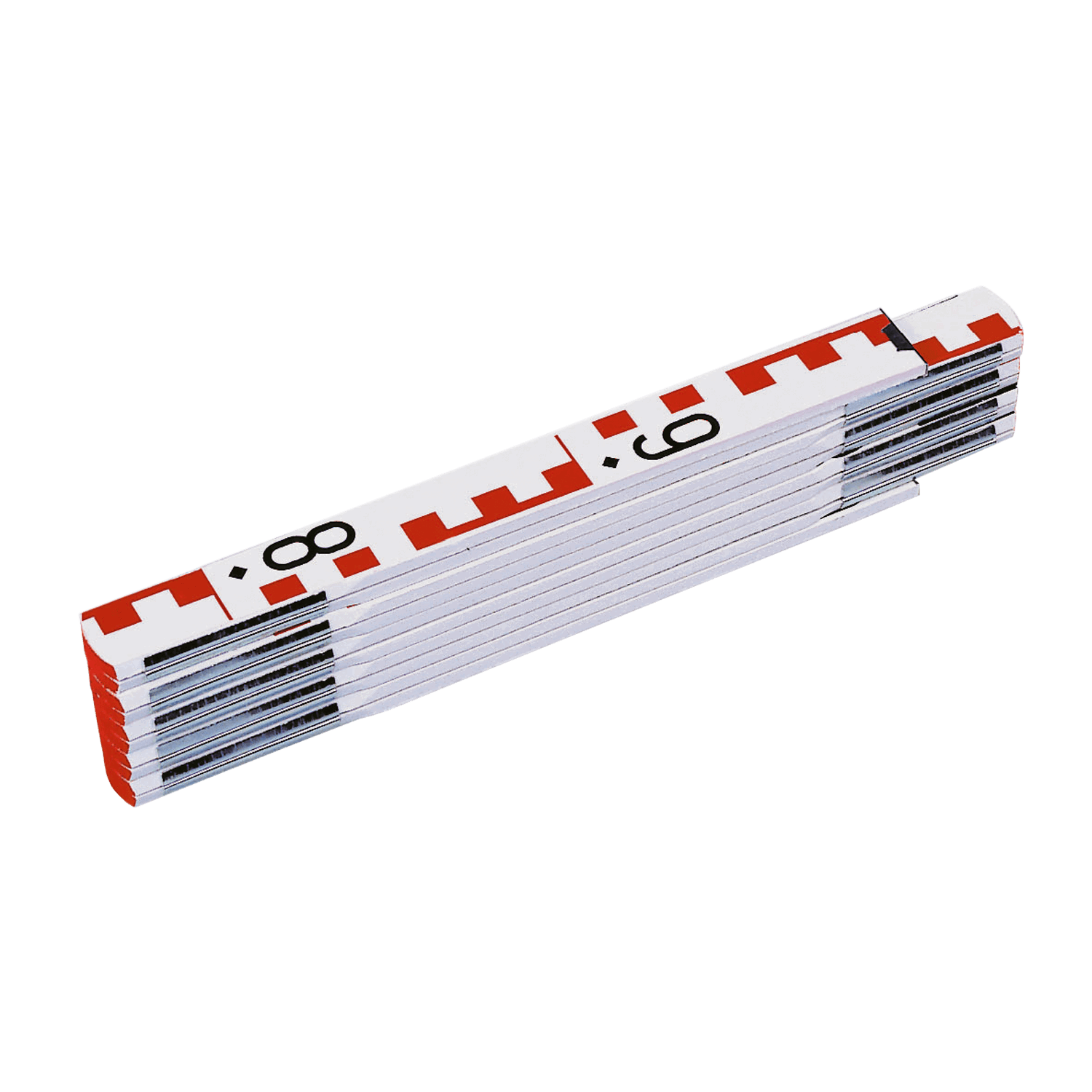 - Az elülső oldalon centiméter-E skálaosztás, felváltva 1 m fekete, 1 m piros
