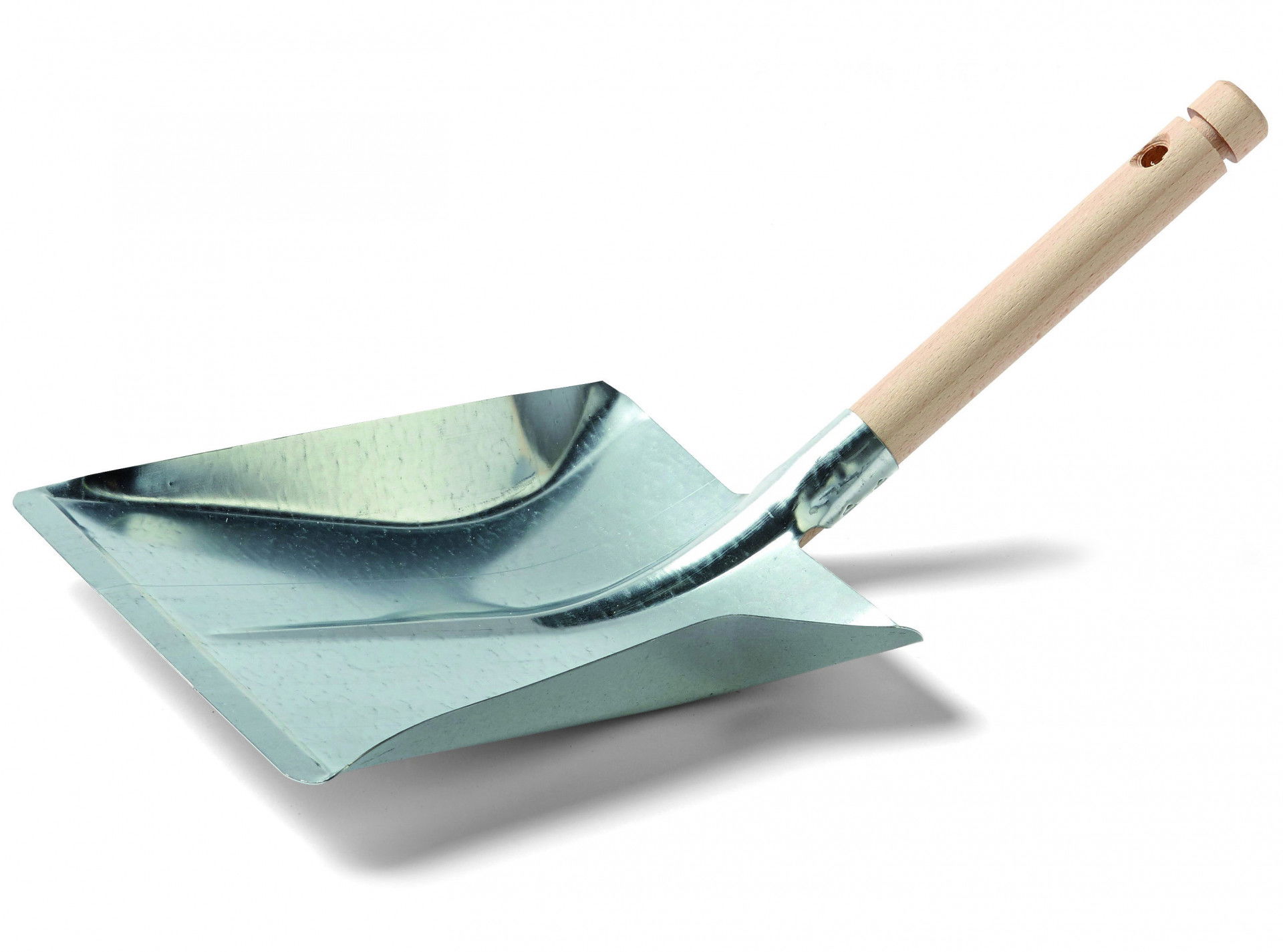 Szemeteslapát horganyzott fémből, fa nyéllel.